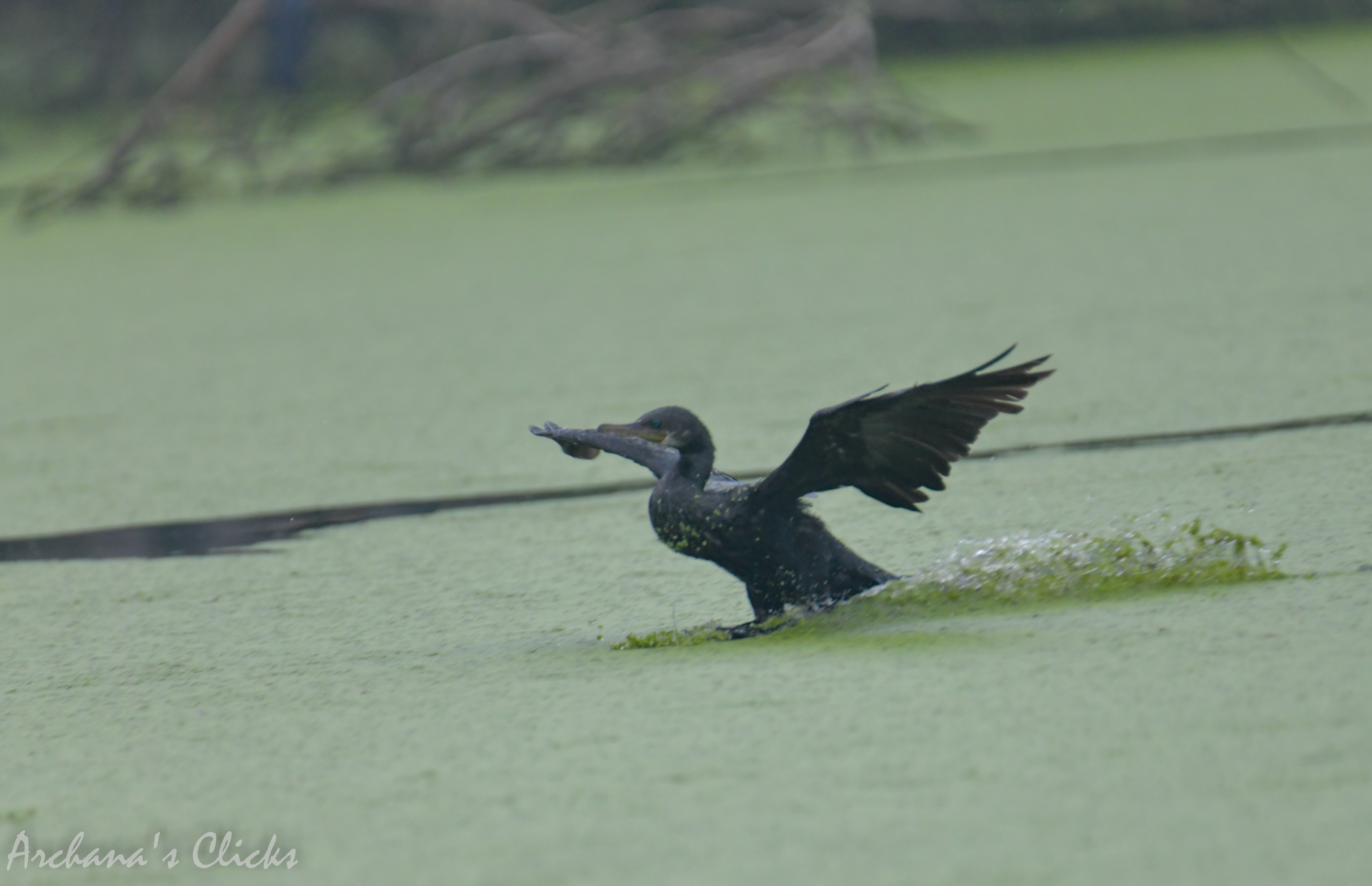 One of the picture shows the black drongo hovering to catch a fish.